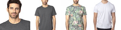 4.1 oz., 60% combed ringspun cotton, 40% polyester; 6.97 oz./lin. yd., 60% combed ringspun cotton, 40% polyester; Lightly textured print friendly surface; 32 singles; Retail fit; Side-seamed; Tear away label;