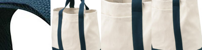 - 100% cotton twill Cotton web handles reinforced with stress-point stitching Dimensions: 15.5"h x 13"w x 7"dNote: Bags not intended for use by children 12 and under. Includes a California Prop 65 and social responsibility hangtag.