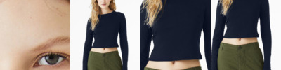 - Seamless 1x1 rib knit collar with clean neckline