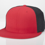 Cotton twill front panels and visor with mesh back panels; ProCrown with buckram-fused front panels and ProStitching; pre-curved PE visor with eight rows of stitching.
